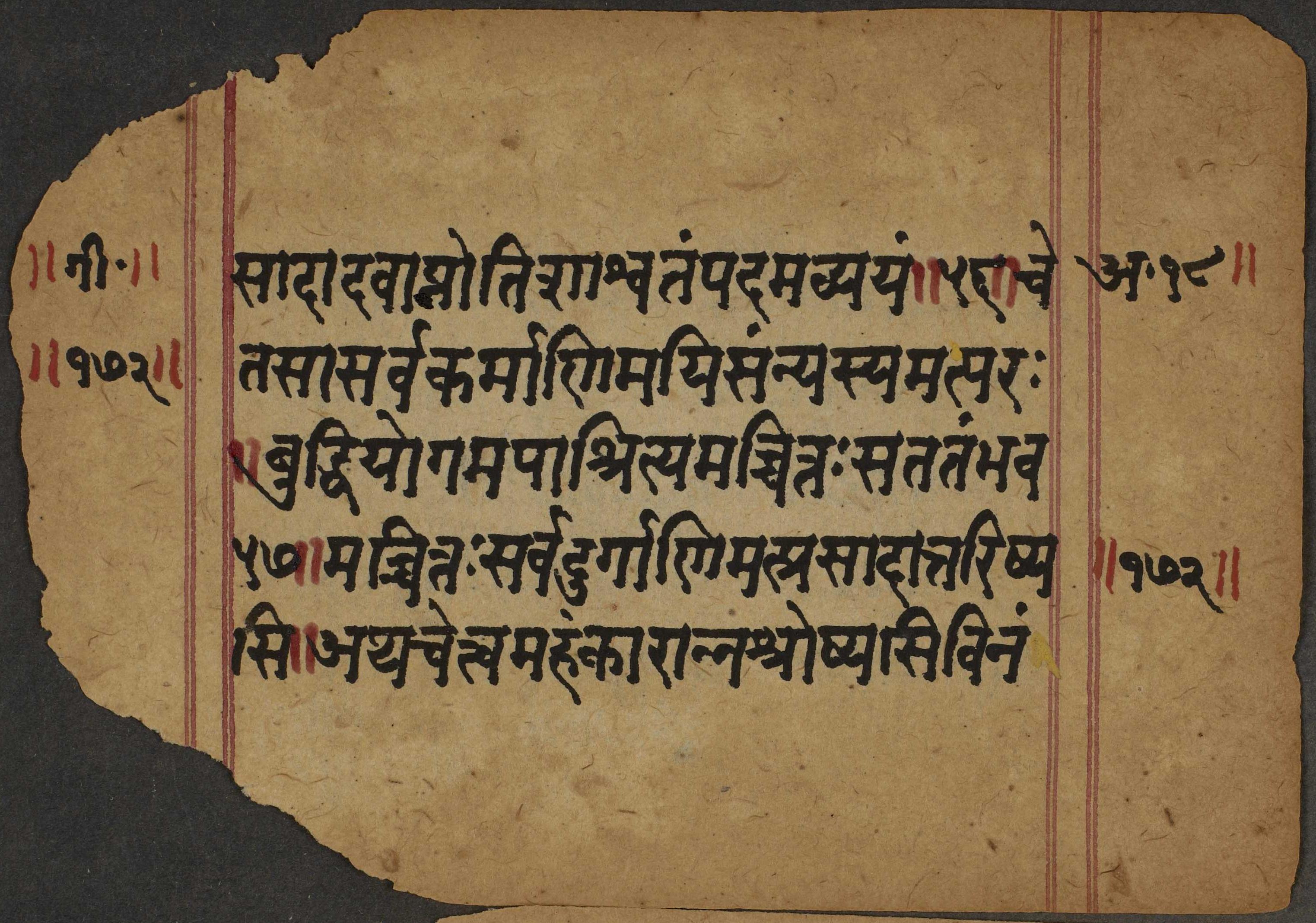 [?]ravApnotiSa[,]caMdumaayaM.tasya [,]ptasAsarvakargrAstimayitacasyamaharaH [?]mIyogamapASrityaimazai[?]sataraBara kreSaM BikesamakAranantrozyAsarvasaM
